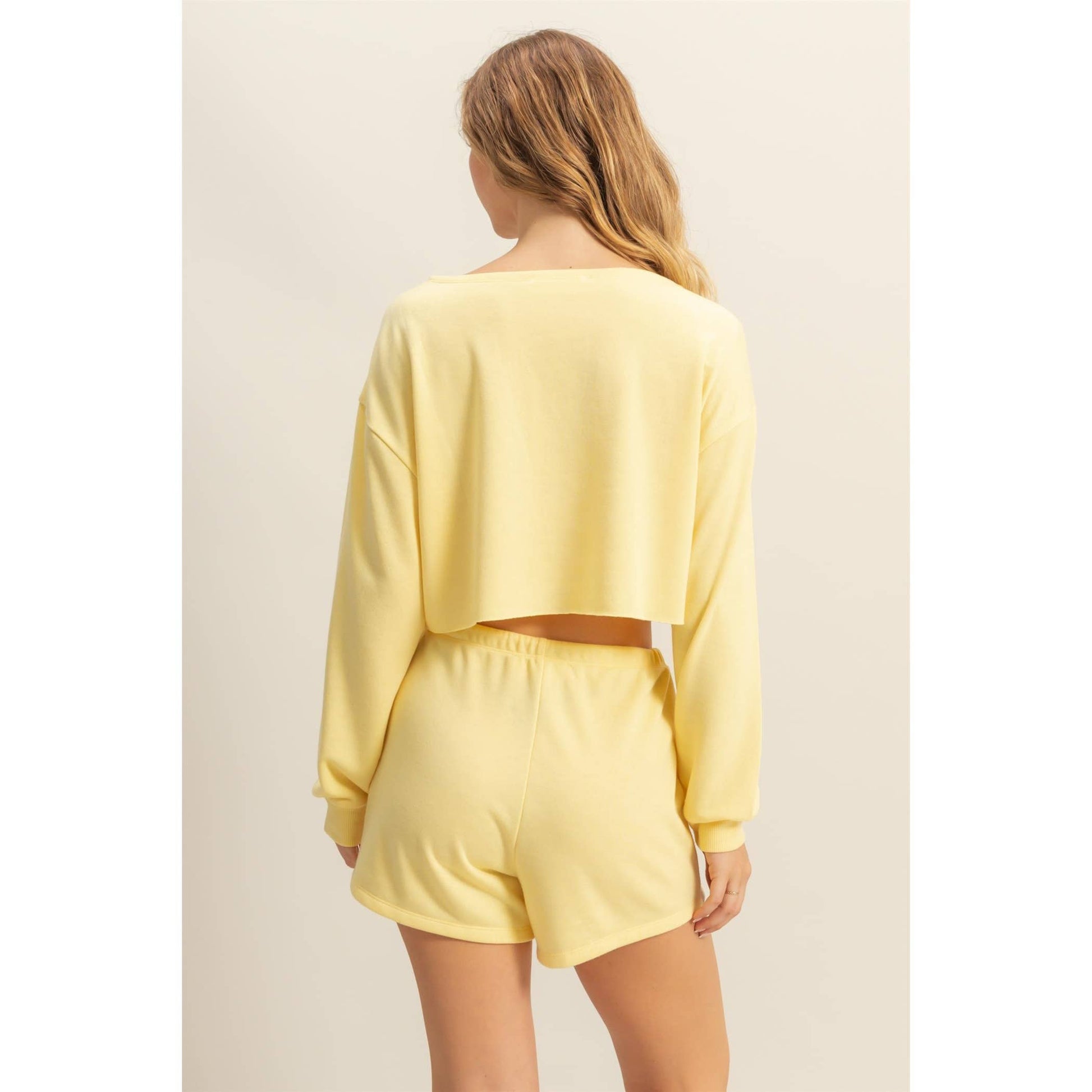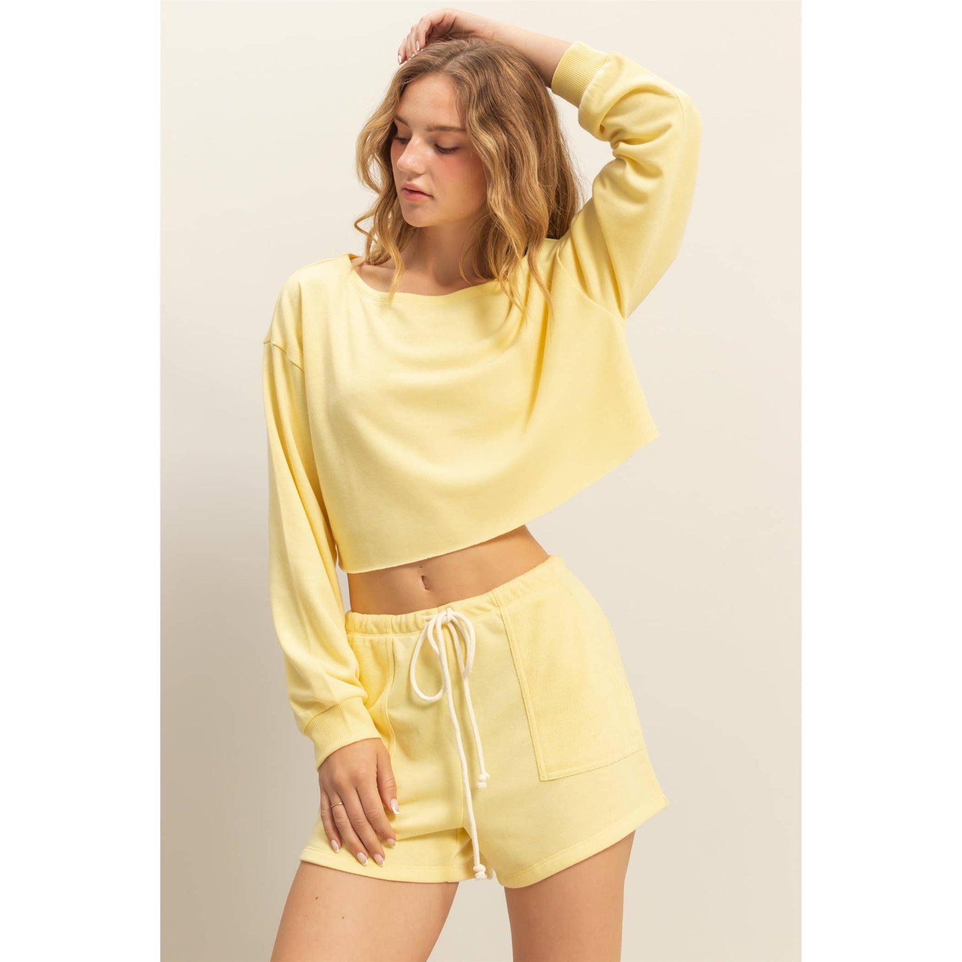 Elevate your casual wardrobe with this chic light yellow top, designed to blend comfort and style effortlessly. Featuring a flattering boat neck and relaxed drop shoulders, this long-sleeved piece offers a modern cropped box silhouette that moves gracefully with you. Crafted from a soft poly-rayon blend with a subtle stretch rib, it ensures both breathability and shape retention. Perfect for pairing with your favorite jeans or skirts, this top adds a fresh, stylish touch to any outfit while celebrating your curves beautifully.