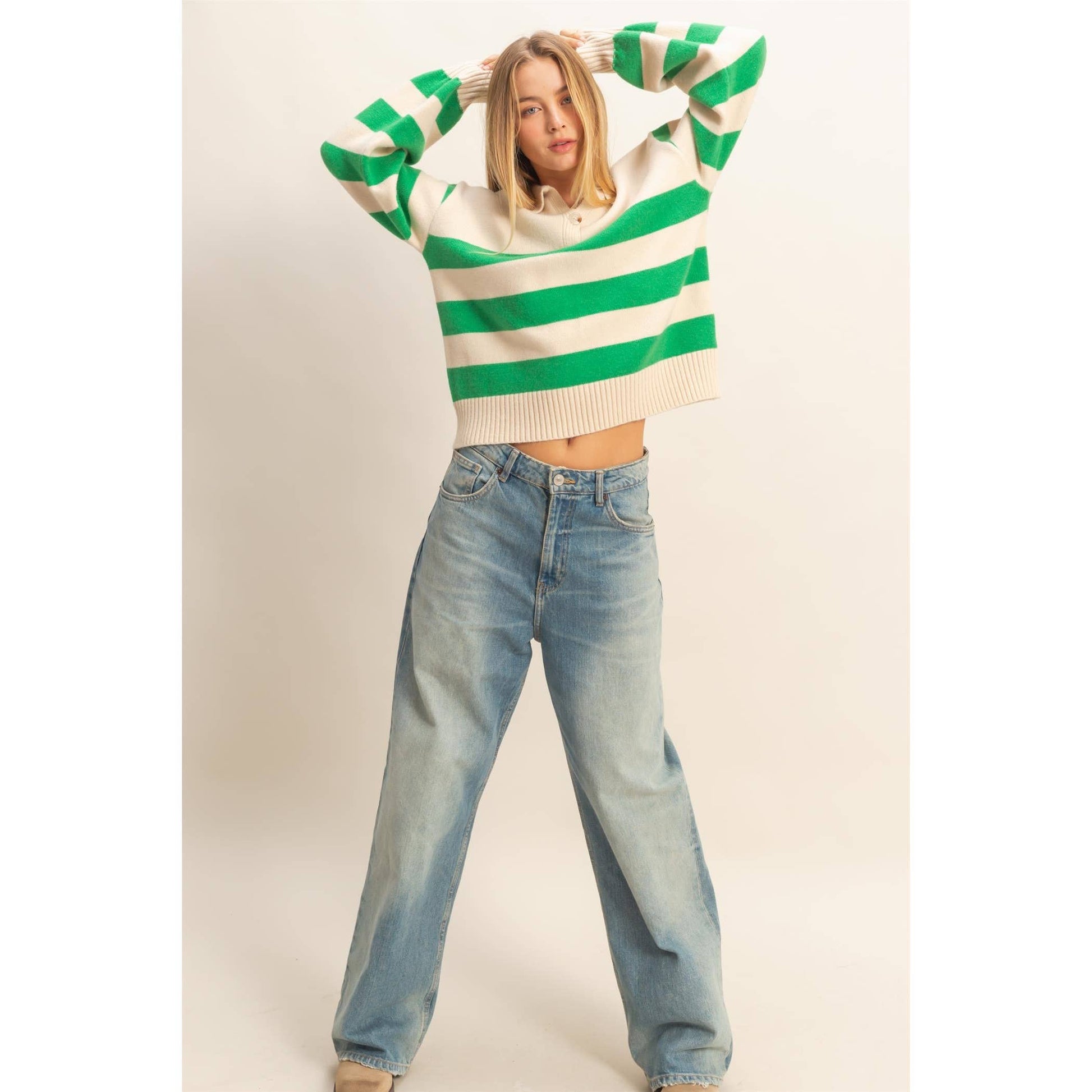 Striped Collar Knit Sweater